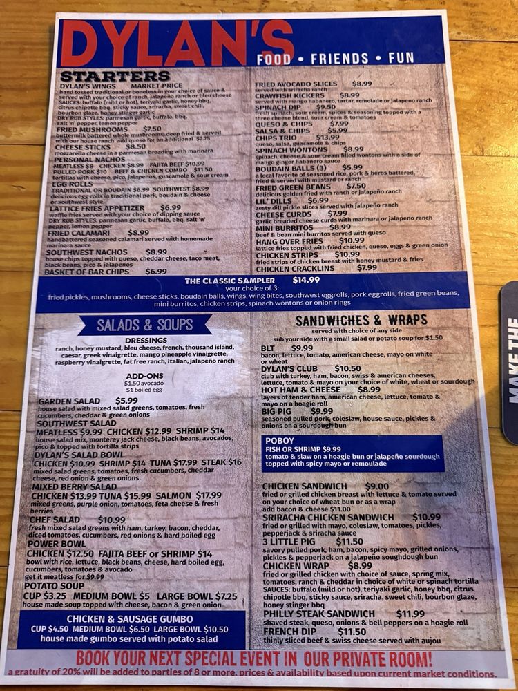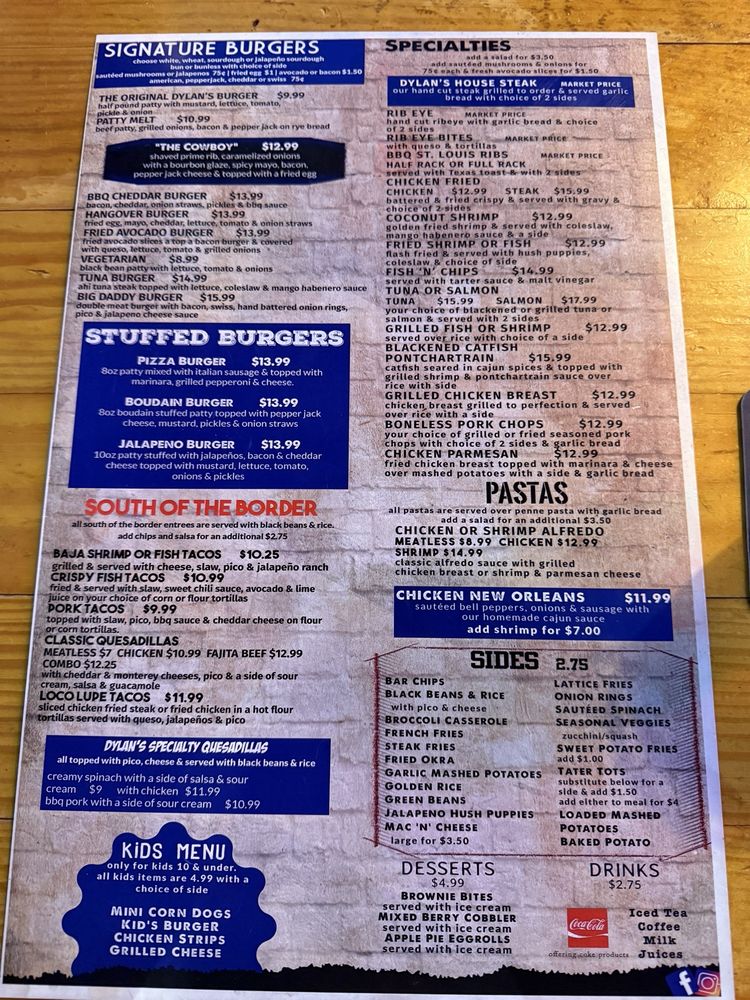 Introducing Dylan's Bar and Grill, a vibrant sports bar in Port Arthur, TX, known for its lively atmosphere and American cuisine. This casual dining spot offers a range of amenities, including outdoor seating, a pool table, live music, and happy hour specials. The menu features classic bar fare with a twist, perfect for groups and families alike. With options for delivery, takeout, and reservations, Dylan's Bar and Grill ensures convenience for all patrons. The full bar, TV screens, and good-for-dancing ambiance create a fun and energetic dining experience. Whether you're looking for a place to watch the game or enjoy a night out with friends, Dylan's Bar and Grill has something for everyone.